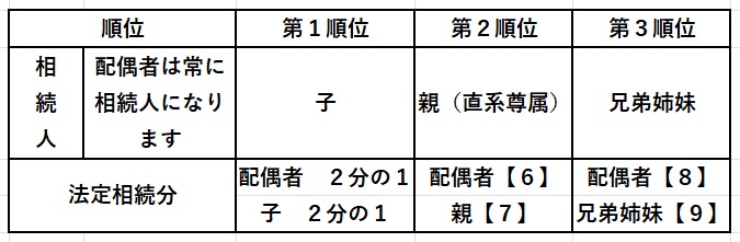 文中の空欄【6】~【10】に入る最も適切なものを選んでください。相続順位と法定相続分は以下のとおりです。